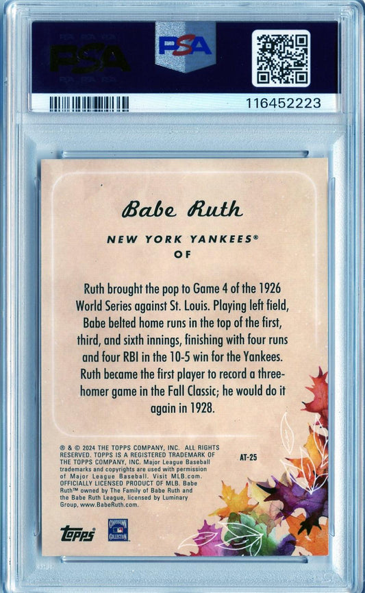 2024 Topps Update #AT-25 Babe Ruth Autumn Tales Gold PSA 8 NM-MT 32/75