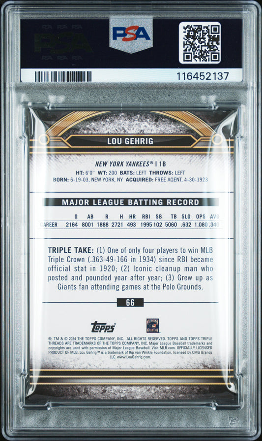 2024 Topps Triple Threads #66 Lou Gehrig Gold PSA 8 NM-MT 40/99