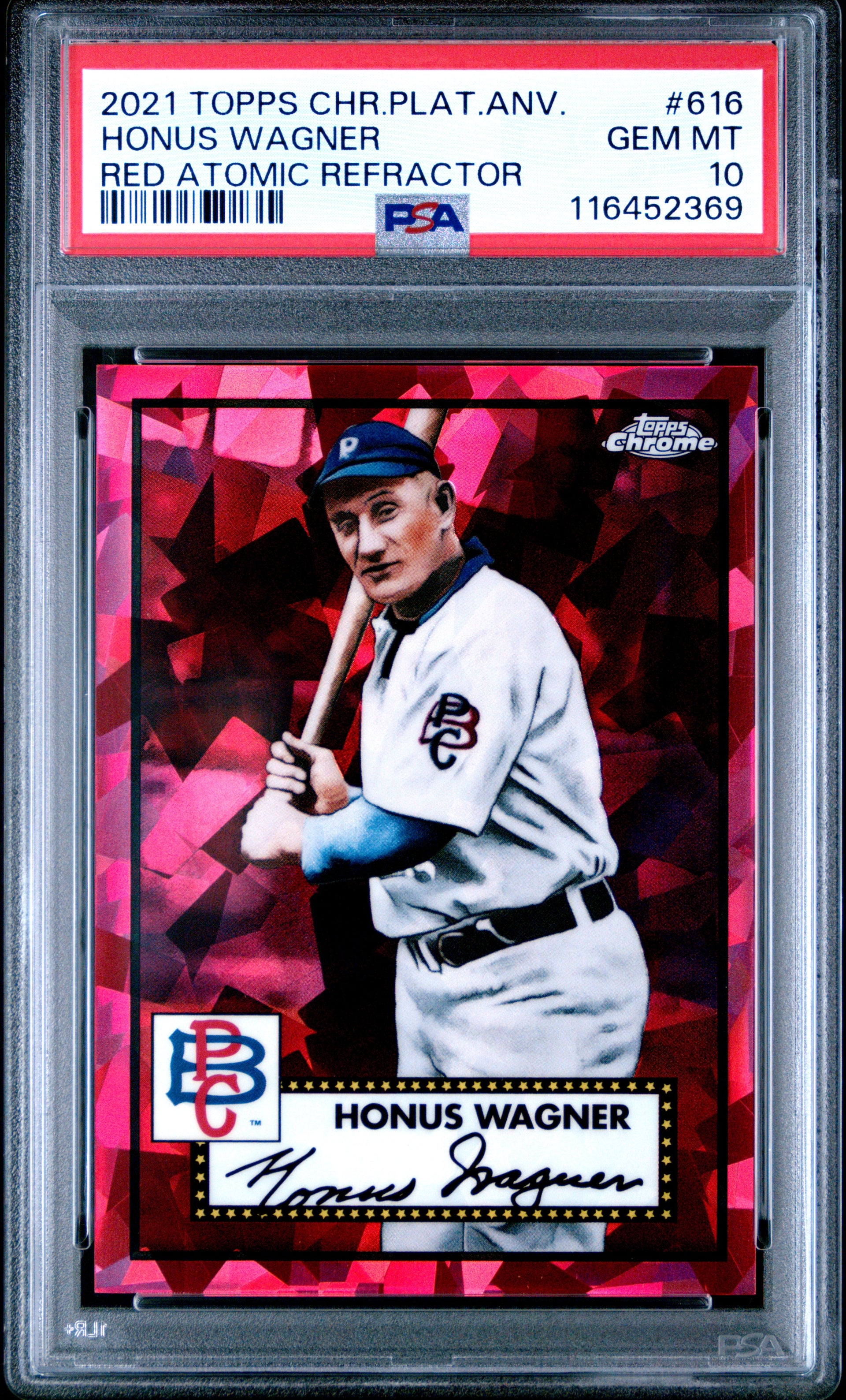 2021 Topps Chrome Platinum Anniversary #616 Honus Wagner Red Atomic Refractor PSA 10 GEM MT 035/100