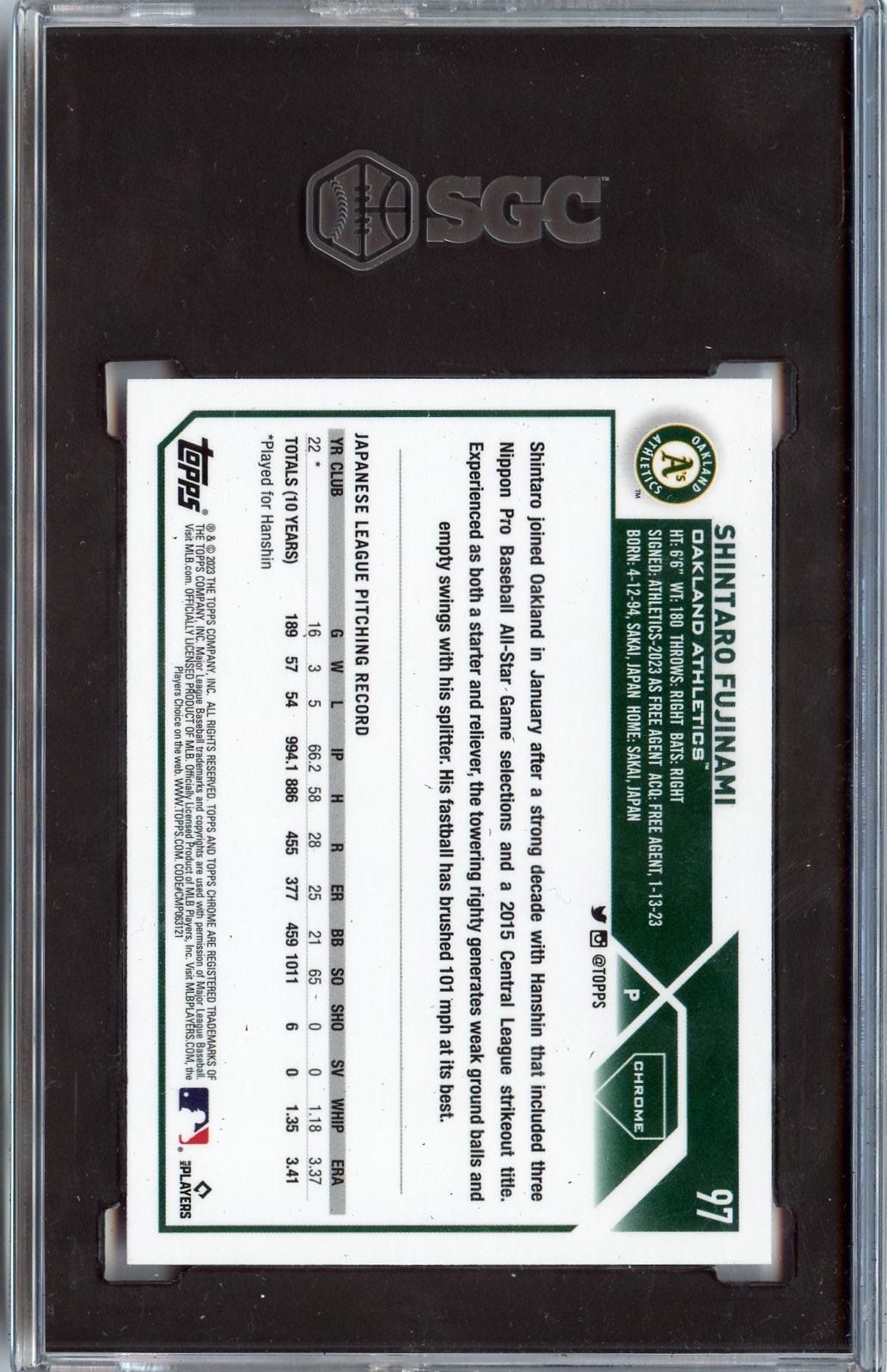 2023 Topps Chrome #97 Shintaro Fujinami Pink Refractors RC SGC 9.5 MT+