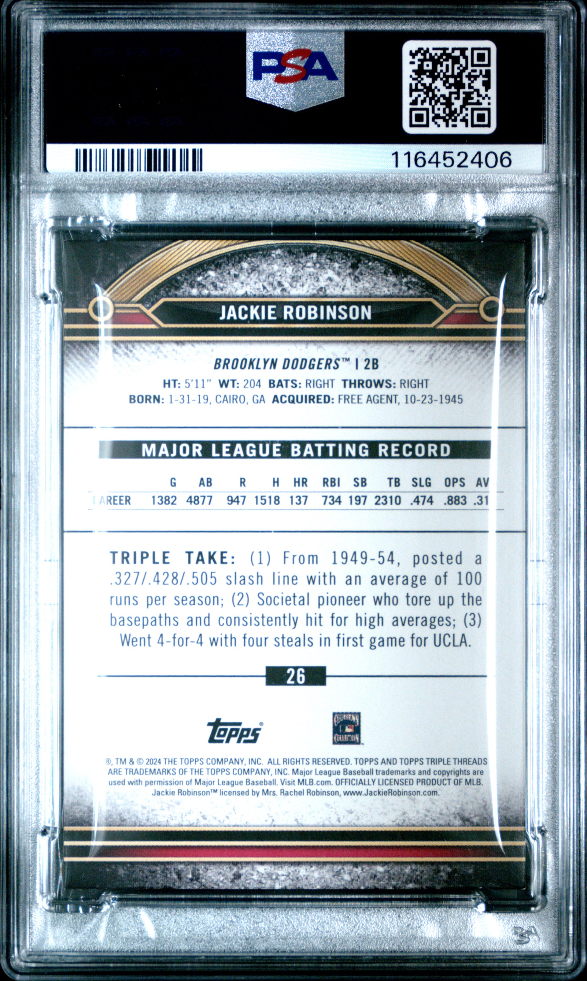 2024 Topps Triple Threads #26 Jackie Robinson Gold PSA 8 NM-MT 33/99