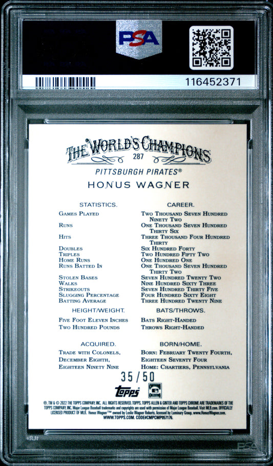 2022 Topps Allen & Ginter Chrome #287 Honus Wagner Gold Refractor PSA 10 GEM MT 35/50