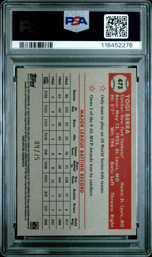2021 Topps Chrome Platinum Anniversary #473 Yogi Berra Rose Gold Mini Diamond Refractor PSA 9 MINT 09/75