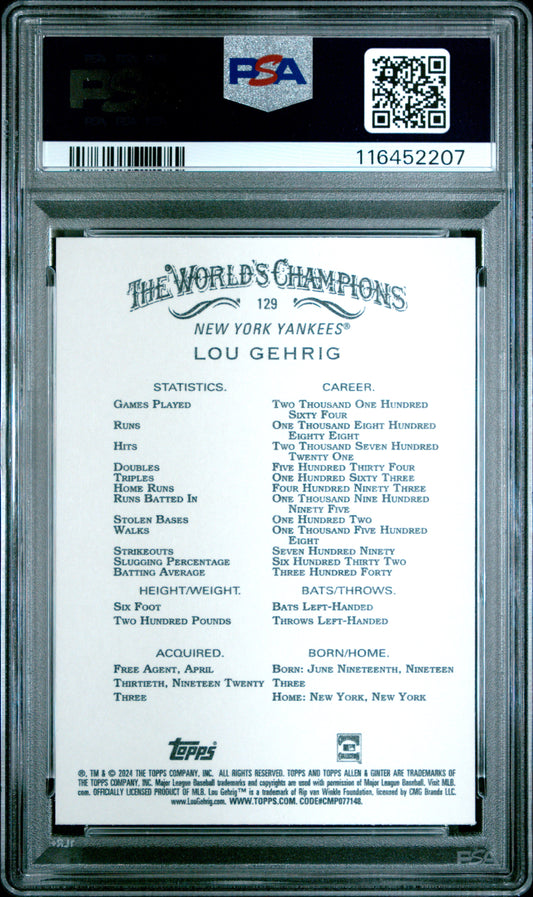 2024 Topps Allen & Ginter #129 Lou Gehrig Gold Foil Filigree PSA 10 GEM MT 41/50