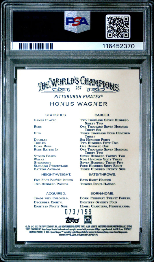 2022 Topps Allen & Ginter Chrome #287 Honus Wagner Magenta Refractor PSA 10 GEM MT 073/199