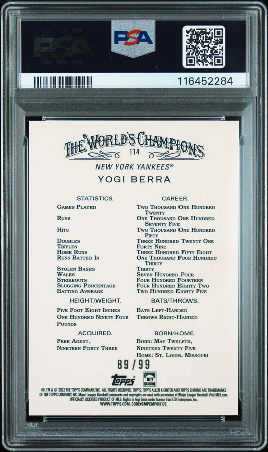 2022 Topps Allen & Ginter Chrome #114 Yogi Berra Green Refractor PSA 9 MINT 89/99