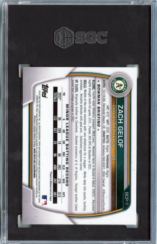 2023 Bowman #BCP-1 Zack Gelof Chrome Prospects Pearl Refractors SGC 9.5 MT+