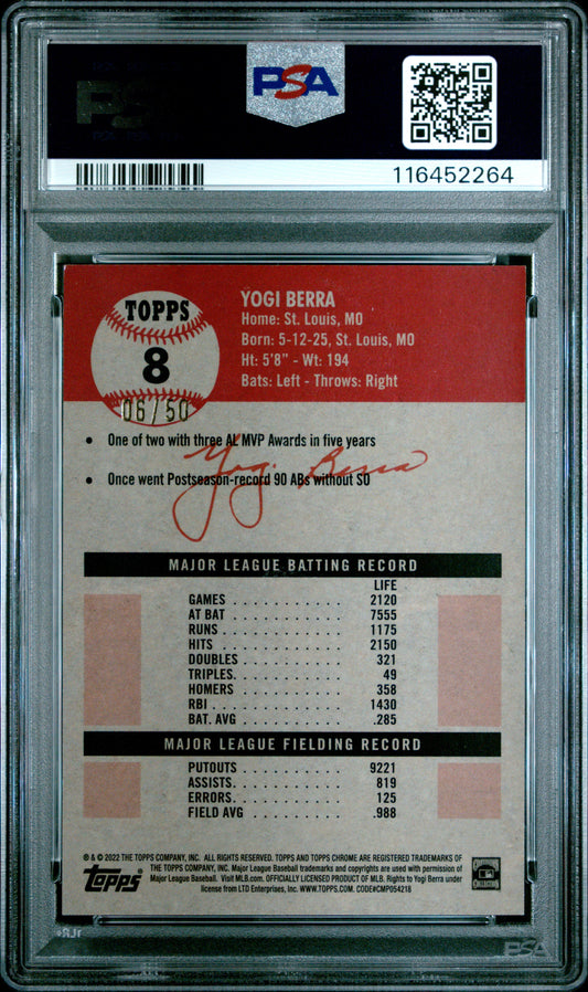 2022 Topps Chrome Platinum Anniversary #8 Yogi Berra Gold Wave Refractor PSA 9 MINT 06/50