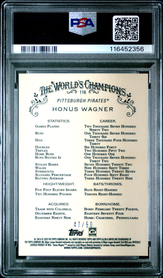 2020 Topps Allen & Ginter Chrome #116 Honus Wagner Gold Refractor PSA 9 MINT 47/50