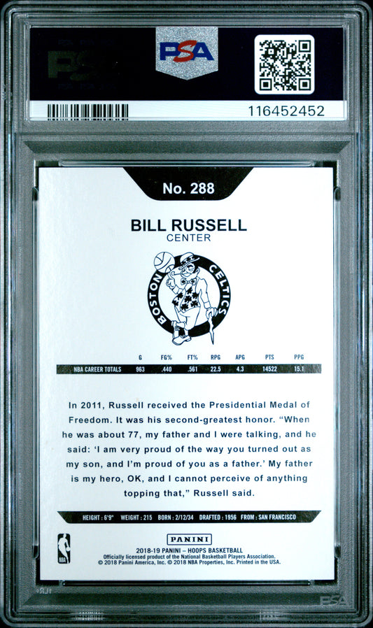 2018 Panini Hoops #288 Bill Russell 25/49 Red PSA 8 NM-MT