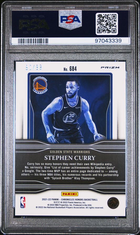 2021 Panini Chronicles #684 Stephen Curry 92/99 Blue PSA 8 NM-MT