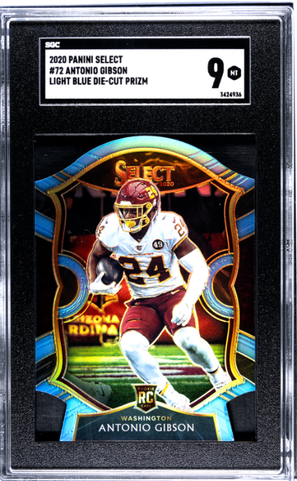 2020 Panini Select #72 Antonio Gibson Light Blue Die-Cut Prizm Rookie Card SGC 9 MT