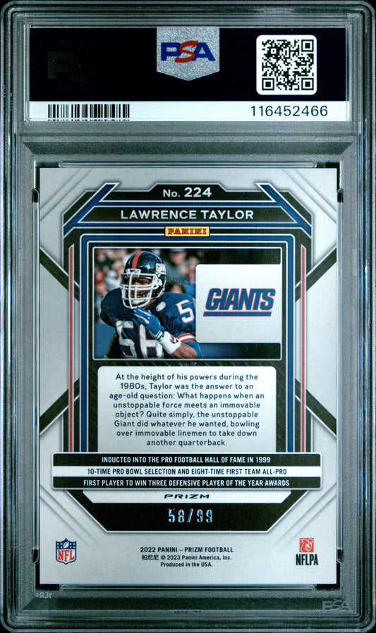 2022 Panini Prizm #224 Lawrence Taylor Blue Ice PSA 10 GEM MT 58/99