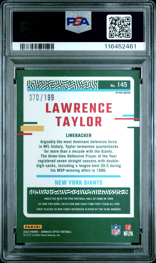 2023 Panini Donruss Optic #145 Lawrence Taylor Blue PSA 7 NM 070/199