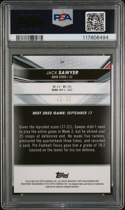 2022 Bowman'S Best University #33 Jack Sawyer Green Refractor PSA 10 GEM MT 49/99